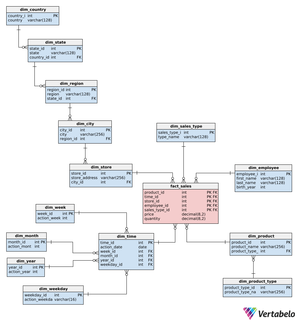 Check dim_store, dim_product, and dim_time and compare with Star Schema.
